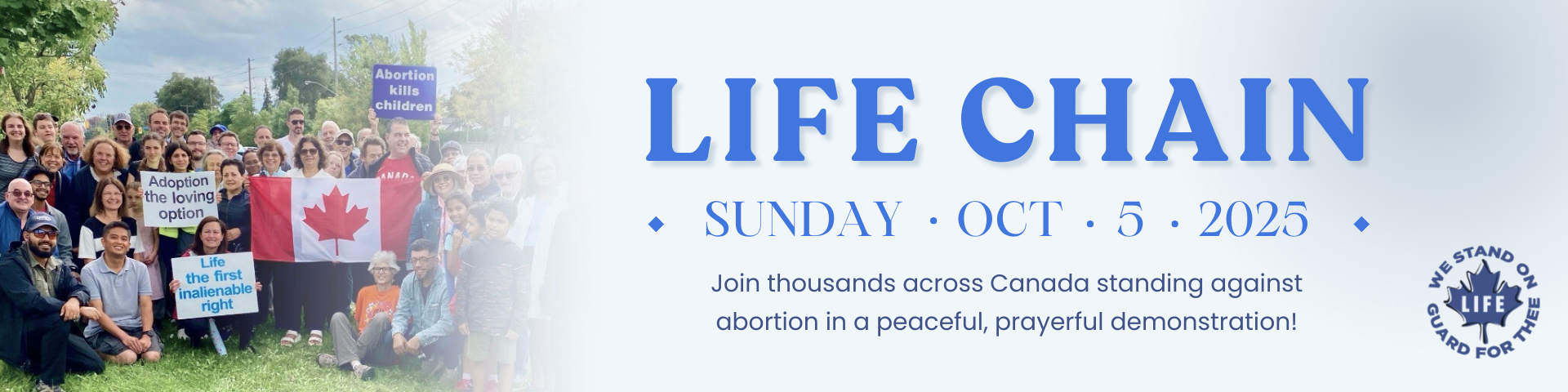 Please mark your calendar—the next Life Chain will be on Sunday, October 5, 2025 from 2-3 pm in most locations.