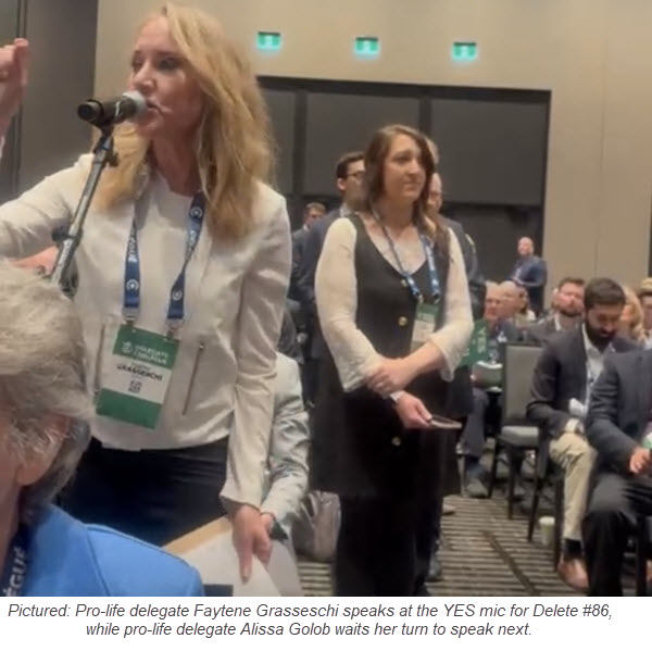 - 10 pro-faith, pro-freedom policy resolutions passed. These include a commitment to protect Christian charities (including pro-life ones), a pledge to protect licensed professionals from having their accreditation revoked solely for voicing their opinion or refusing compelled speech, opposition to political debanking, defunding the pro-abortion CBC, and more.