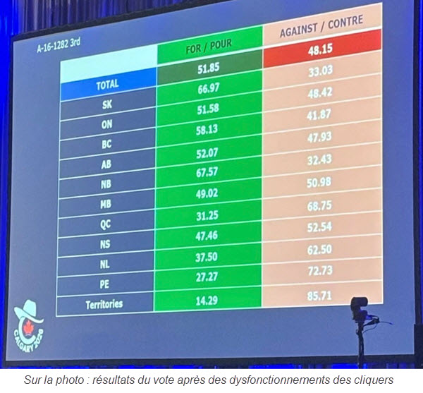 Les moments les plus marquants — et chaotiques — du congrès ont sans conteste été ceux où deux résolutions politiques socialement conservatrices ont été rejetées à une faible majorité.