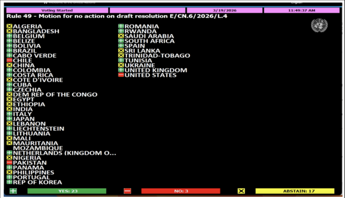 In the end, the EU’s forced vote worked and blocked the US resolution on biological sex with 23 in favor, 3 against, and 17 abstentions.